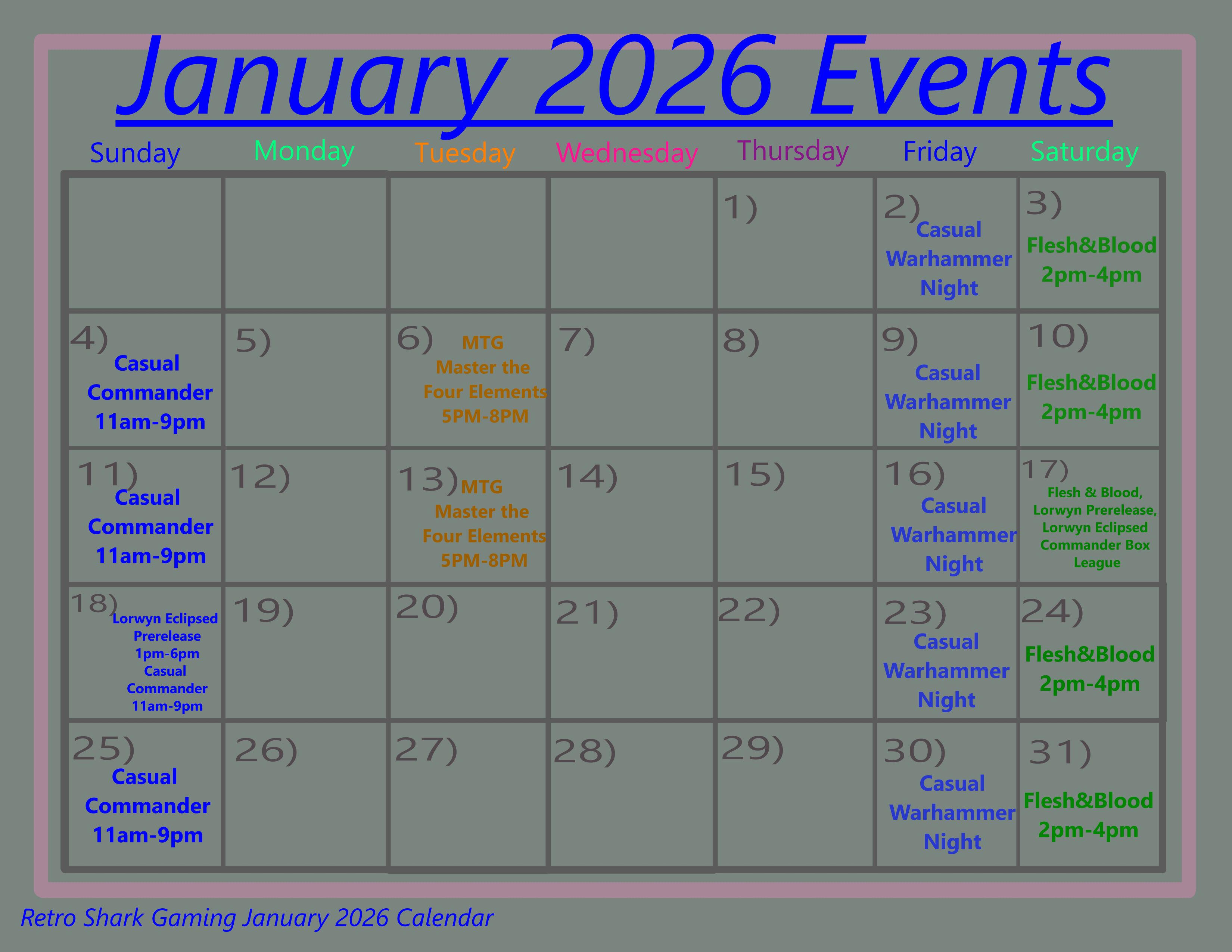We carry a wide variety of products including Video games, Consoles, Trading Cards, TTRPGs and supplies, Collectibles, Warhammer, Board games, and more.